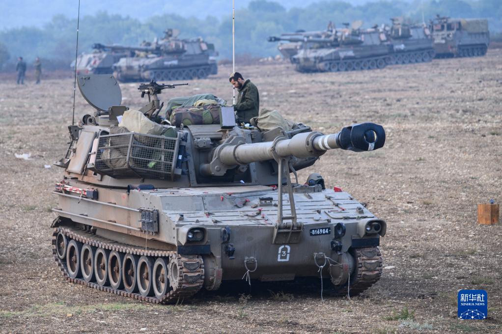 這是10月8日在以色列北部靠近黎巴嫩的邊境區域拍攝的以色列軍用車(chē)輛。