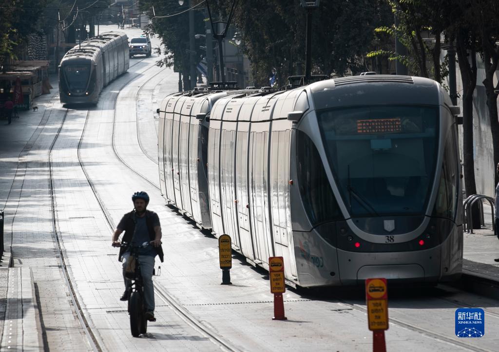 10月8日,輕軌列車(chē)行駛在耶路撒冷街頭。