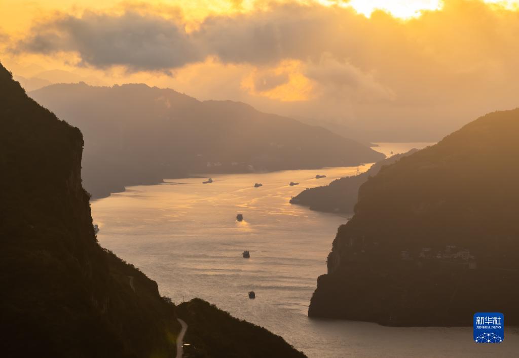 10月8日,船舶行駛在長(cháng)江三峽西陵峽湖北省宜昌市秭歸縣水域。