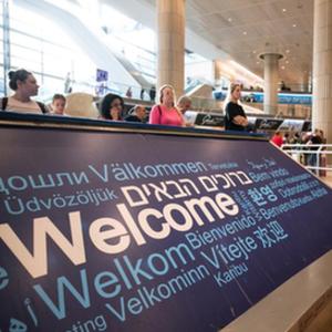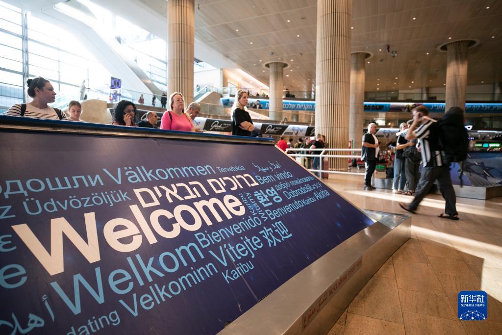 10月8日,旅客在以色列特拉維夫附近的本-古里安國際機場(chǎng)候機出行。