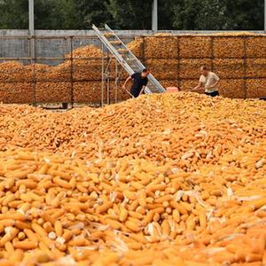 10月8日,農民在河北省隆堯縣雙碑鄉雙碑村田地內運輸剛剛收獲的玉米。