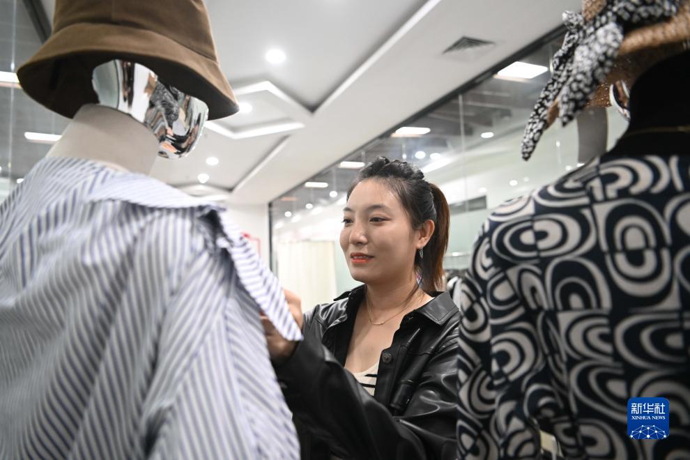 10月8日,石家莊新華區筑盈創(chuàng )業(yè)孵化基地一家服飾企業(yè)的員工在整理服裝。