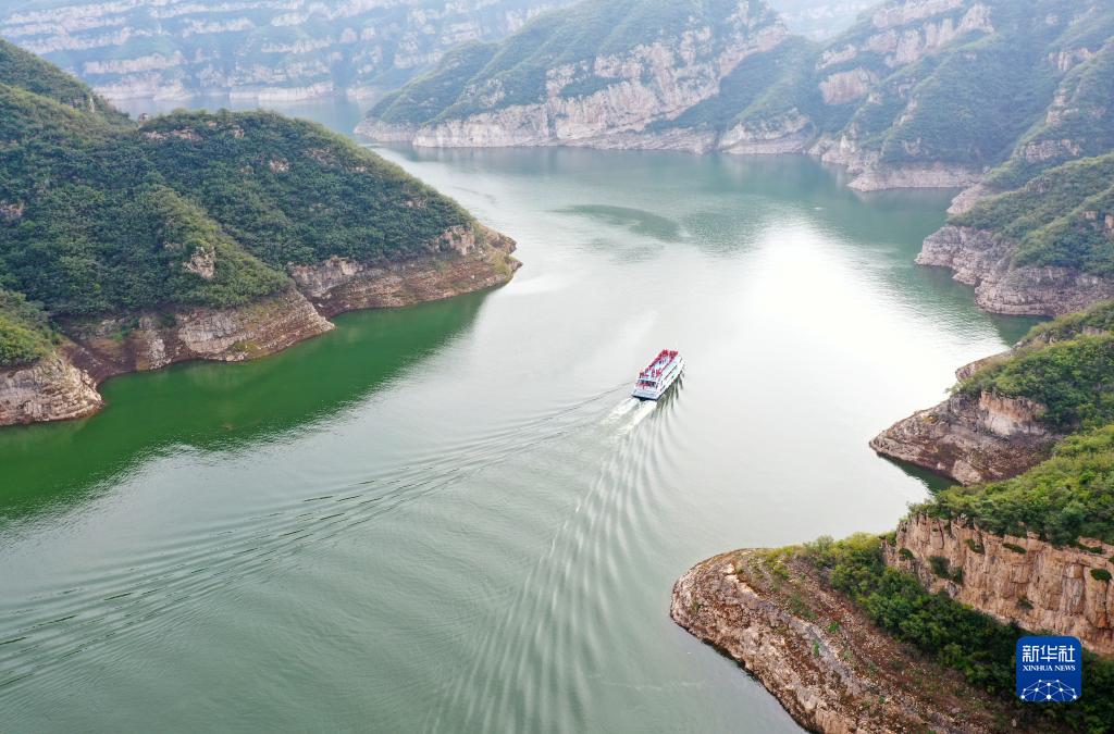 時(shí)值秋日,位于小浪底水利樞紐上游的河南濟源黃河三峽景區,奇峰峻秀,碧波蕩漾,構成一幅秀美壯麗的山水畫(huà)卷。