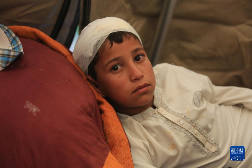 10月9日,在阿富汗西部赫拉特省赫拉特市,在地震中受傷的兒童在醫院休息。