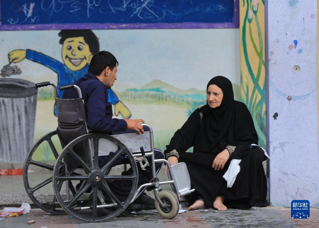 10月9日,巴勒斯坦人在加沙地帶南部城市汗尤尼斯的一所學(xué)校躲避以色列空襲。