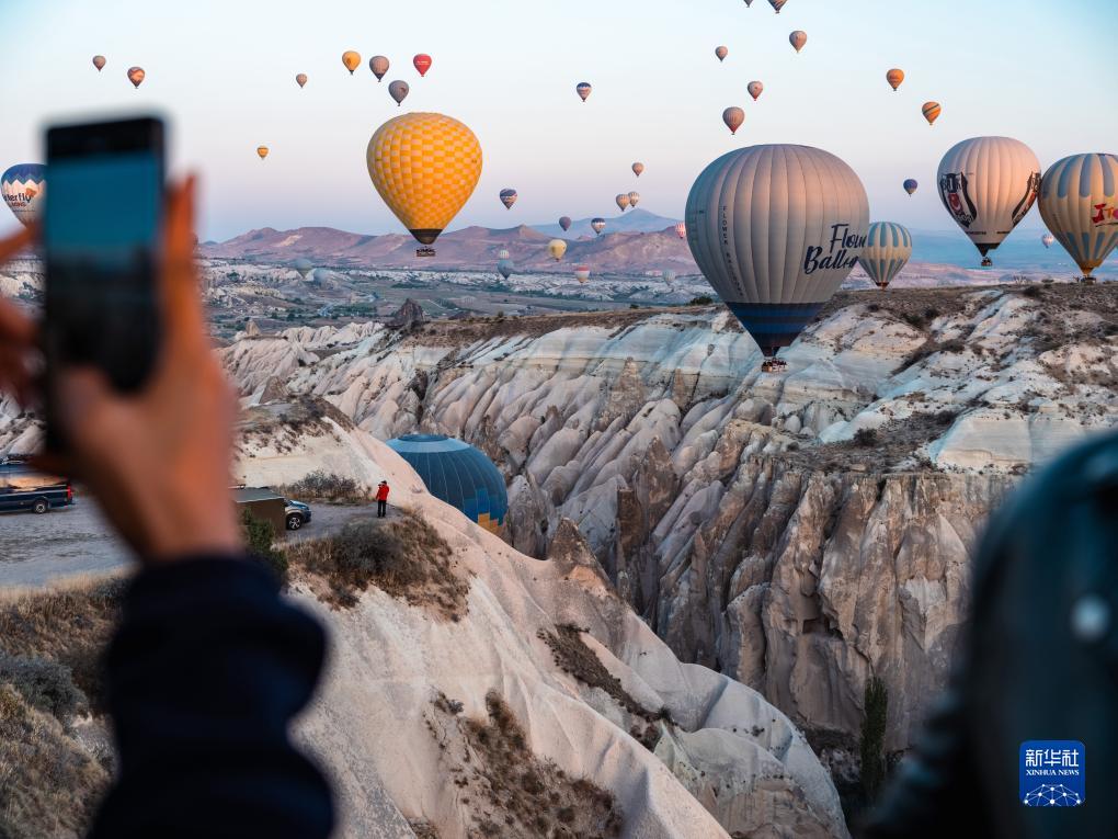這是10月8日在土耳其卡帕多基亞拍攝的熱氣球。