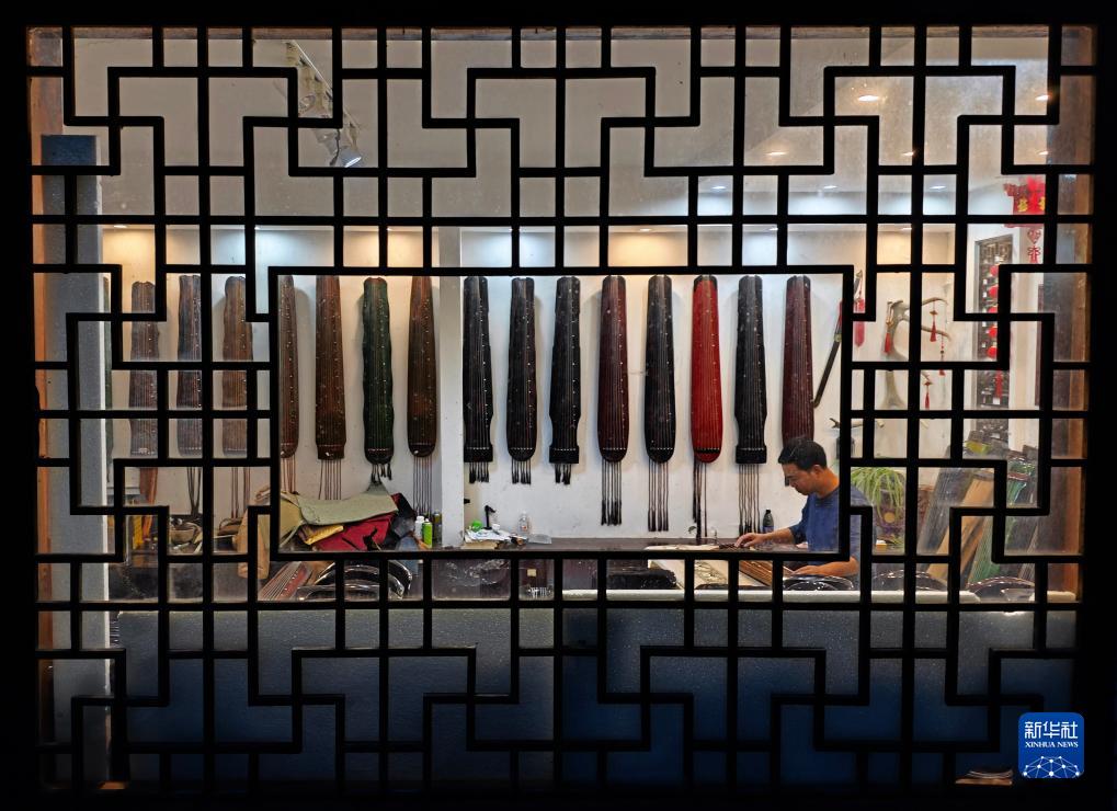 10月9日,河南省蘭考縣堌陽(yáng)鎮徐場(chǎng)村的斫琴師徐亞沖在彈奏古琴。