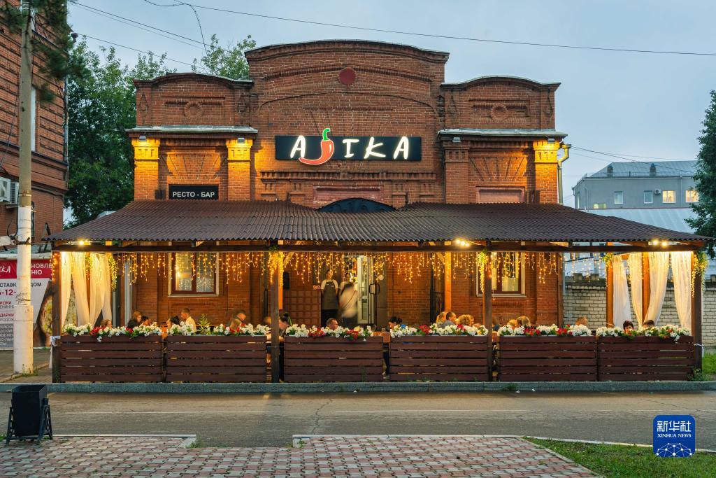 7月24日傍晚,俄羅斯布拉戈維申斯克市的一家餐廳顧客盈門(mén)。