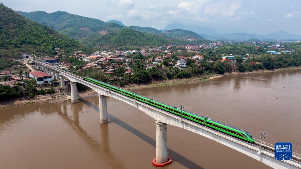2023年5月28日,中老鐵路客運列車(chē)通過(guò)老撾瑯勃拉邦湄公河特大橋(無(wú)人機照片)。中老鐵路北起中國昆明,南抵老撾萬(wàn)象,全長(cháng)1035公里,是“一帶一路”共商合作、共建項目、共享紅利的生動(dòng)例證。截至10月3日,中老鐵路開(kāi)通運營(yíng)滿(mǎn)22個(gè)月,累計運輸貨物2680多萬(wàn)噸,其中進(jìn)出境貨運量550萬(wàn)噸,貨物品類(lèi)增加至2700多種。