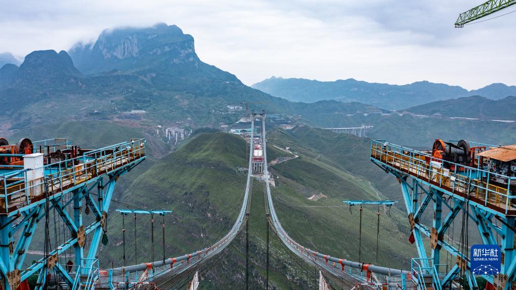 建設中的納晴高速牂牁江大橋(10月11日攝,無(wú)人機照片)。