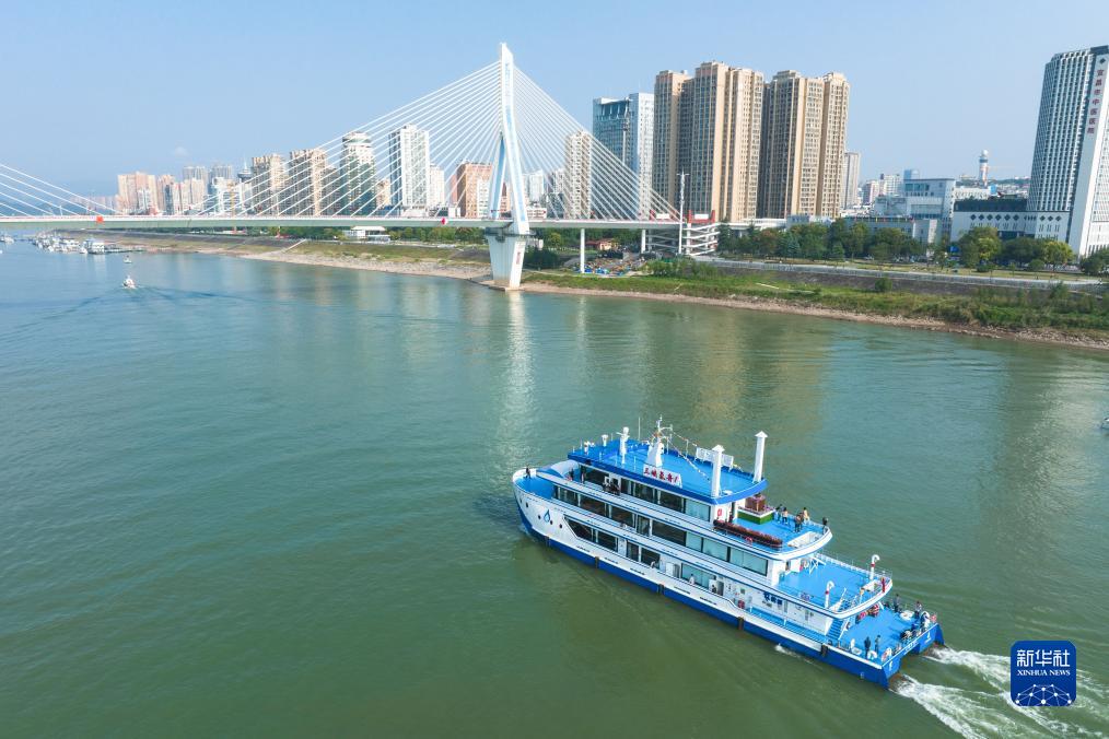 10月11日,“三峽氫舟1”號行駛在長(cháng)江湖北宜昌水域(無(wú)人機照片)。