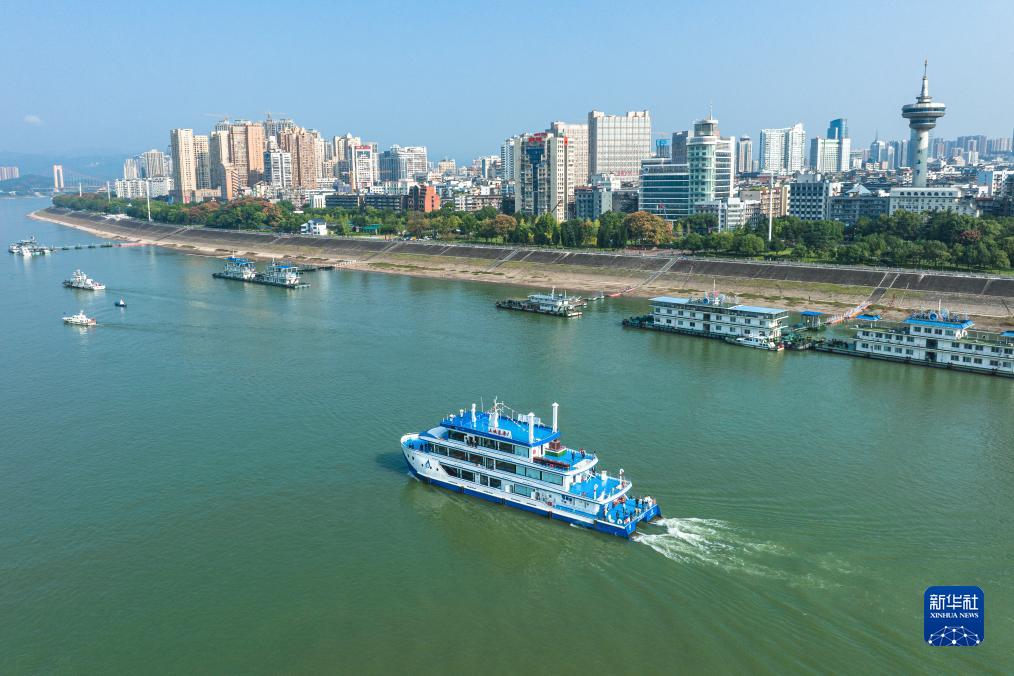 10月11日,“三峽氫舟1”號行駛在長(cháng)江湖北宜昌水域(無(wú)人機照片)。