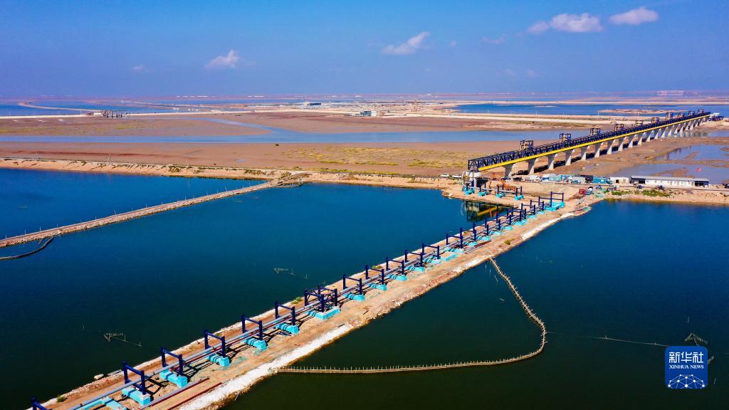 這是濱州市濱州港海港港區管廊支架(一期)工程項目(10月11日攝,無(wú)人機照片)。