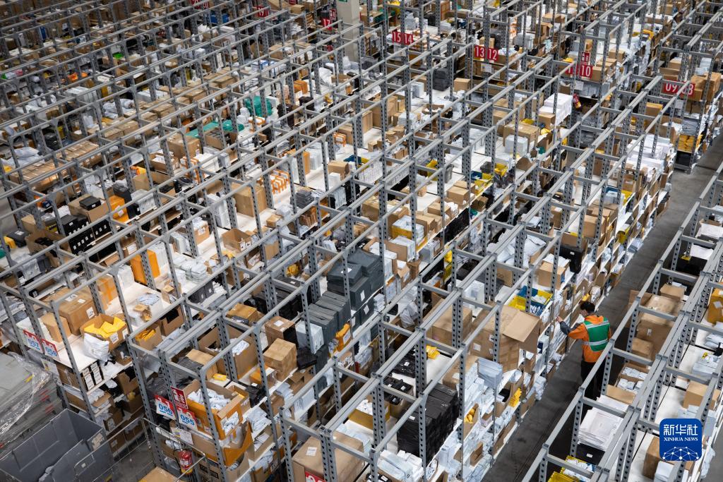 工作人員在西班牙瓜達拉哈拉市的菜鳥(niǎo)海外倉分揀商品(2020年11月11日攝)。