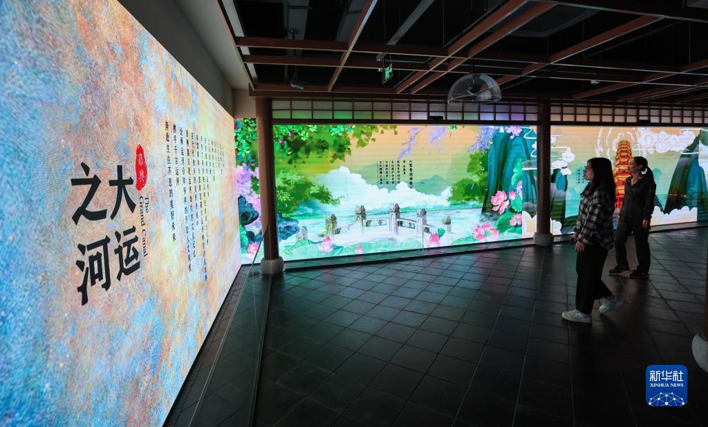 10月11日,游客在大運河數字詩(shī)路e站內觀(guān)看數字化呈現的大運河相關(guān)詩(shī)詞及景色。