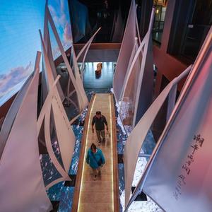 2023年,浙江省嘉興市南湖區的大運河數字詩(shī)路e站南湖體驗中心向市民游客開(kāi)放。該體驗中心以實(shí)體場(chǎng)景和數字平臺同步建設推進(jìn)的方式,融入文字、影像、VR、全息投影等新媒體技術(shù),通過(guò)主題展區和互動(dòng)功能區,多方位展示大運河嘉興段沿線(xiàn)詩(shī)詞、景點(diǎn)、歷史遺存和非遺文化等資源,生動(dòng)呈現出江南運河的人文底蘊,是運河文化產(chǎn)業(yè)集聚和文化藝術(shù)溝通交流的平臺,吸引市民游客前來(lái)參觀(guān)體驗。