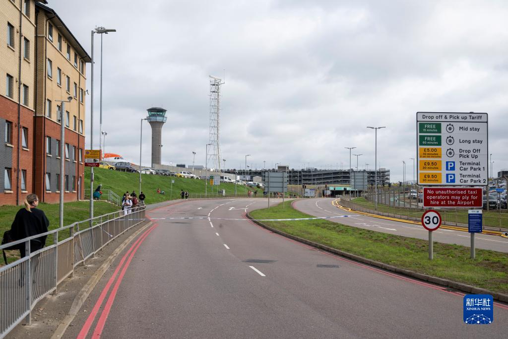 這是10月11日在英國倫敦盧頓機場(chǎng)外拍攝的封閉道路。