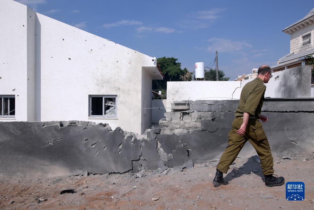 這是10月11日在以色列阿什凱隆拍攝的遭加沙火箭彈襲擊的圍墻。