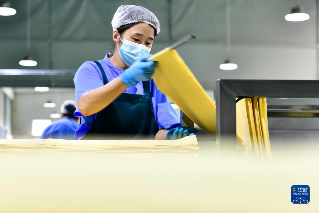 10月11日,山東省惠民縣東方豆制品有限公司的工作人員在加工豆制品。