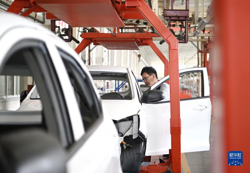 10月11日,河北元氏縣一家多功能車(chē)輛生產(chǎn)企業(yè)工人在生產(chǎn)線(xiàn)上工作。