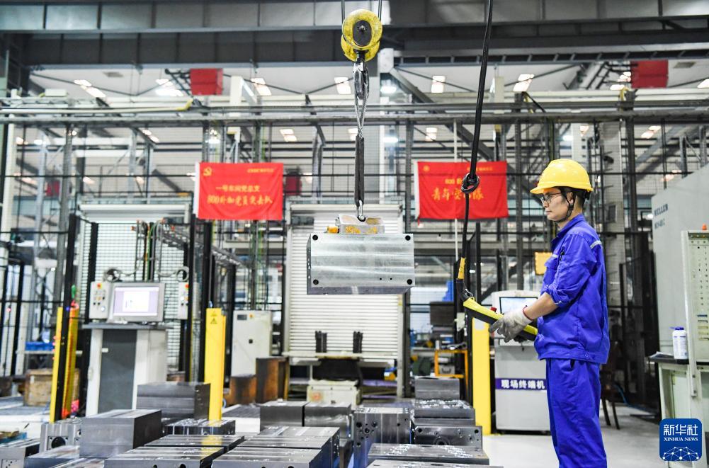10月11日,在位于重慶市永川區的重慶紅江機械有限責任公司,工作人員在機械加工車(chē)間作業(yè)。