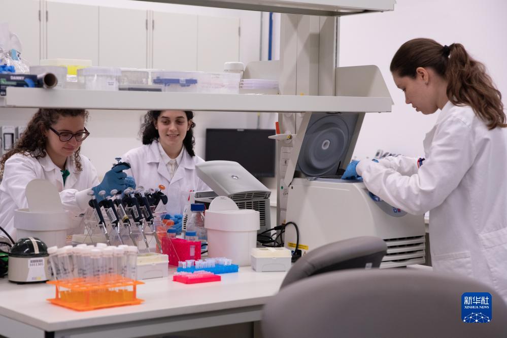 10月11日,科研人員在位于巴西圣保羅州克拉維紐斯的隆平巴西分子生物實(shí)驗室內工作。
