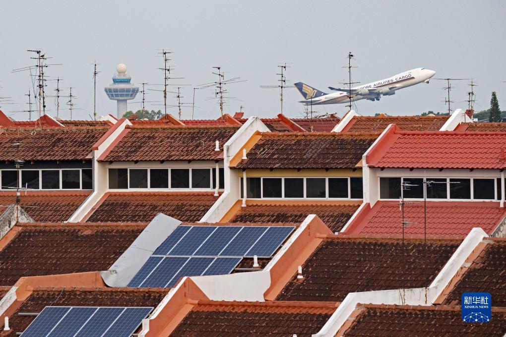 一架新加坡航空公司運輸機從新加坡樟宜機場(chǎng)起飛(2023年8月31日攝)。新加坡樟宜機場(chǎng)是大型國際樞紐機場(chǎng),年客容量可達8500萬(wàn),年貨郵吞吐量可超過(guò)200萬(wàn)噸。