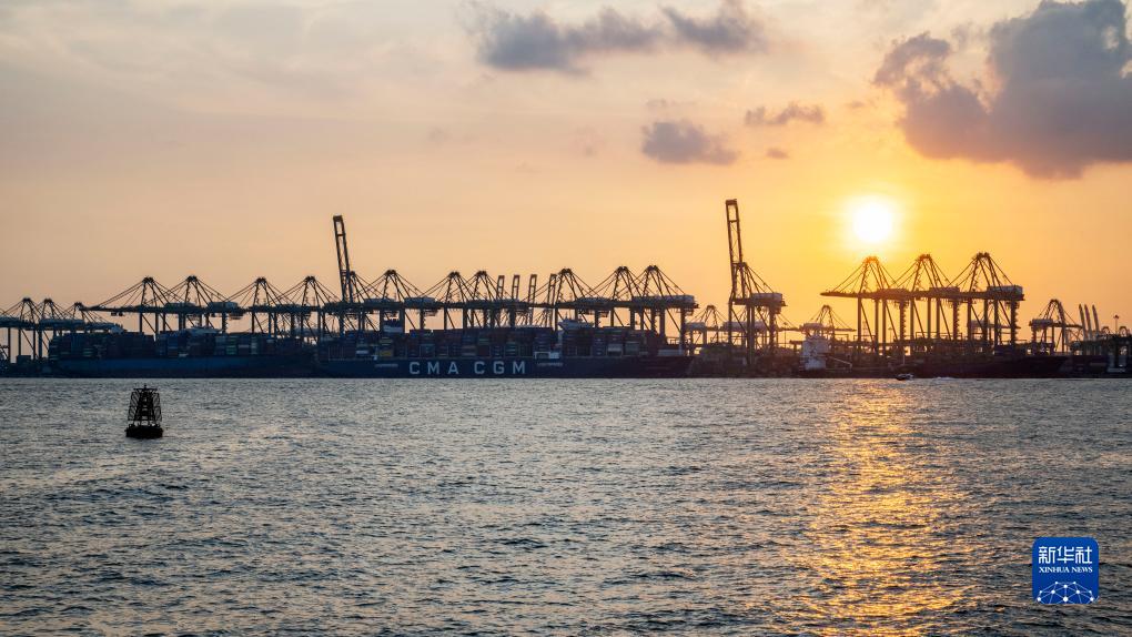 貨輪停泊在新加坡巴西班讓集裝箱碼頭裝卸貨物(2023年9月8日攝)。位于馬六甲海峽東南側的新加坡港,扼太平洋、印度洋航運要道,是東西方海洋貿易的必經(jīng)之地、世界最大的集裝箱港口之一,也是“21世紀海上絲綢之路”的一處重要支點(diǎn)。