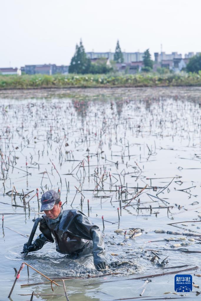 近期,浙江省湖州市吳興區東林鎮的蓮藕、菱角等水鄉特色農產(chǎn)品迎來(lái)豐收,農戶(hù)們趁著(zhù)秋日好天氣進(jìn)行采收。