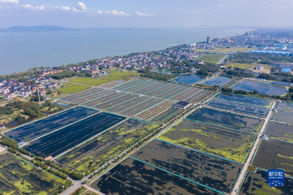 10月12日拍攝的位于太湖南岸的織里鎮太湖蟹養殖基地(無(wú)人機照片)。