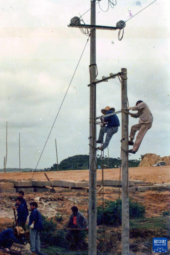 這是在欽州港立起來(lái)的第一根電線(xiàn)桿(1992年5月18日攝)。