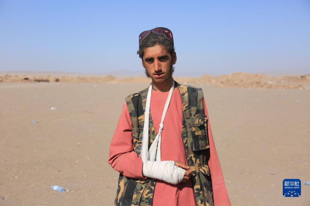 這是10月11日在阿富汗西部赫拉特省津達詹區奈卜拉菲村拍攝的一名受傷村民。