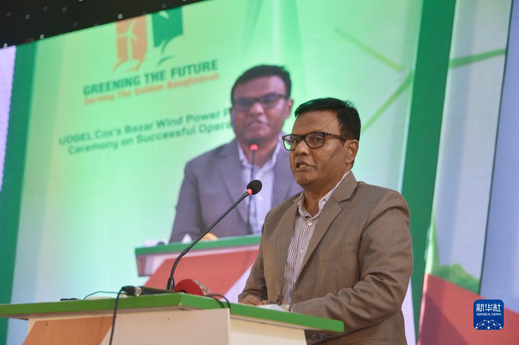 10月12日,在孟加拉國達卡,孟加拉國電力、能源和礦產(chǎn)資源部高級常秘拉赫曼在科克斯巴扎爾風(fēng)電項目投產(chǎn)儀式上講話(huà)。