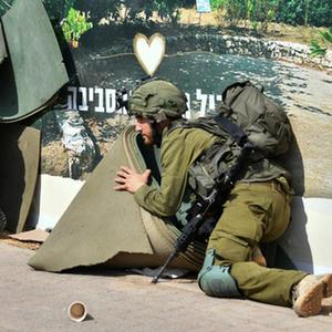 10月12日,以色列南部城市斯代羅特,居民在火箭彈襲擊中避險。
