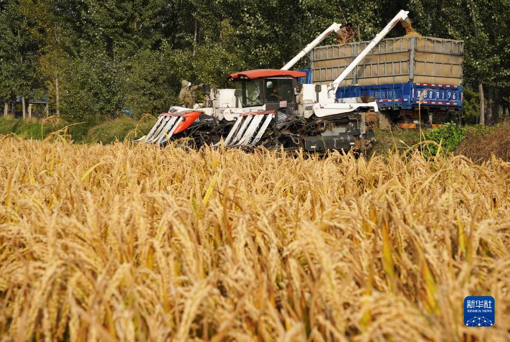 金秋時(shí)節,河北省唐山市的水稻迎來(lái)收獲季節,農民開(kāi)始搶抓農時(shí)適時(shí)收獲,確保顆粒歸倉。