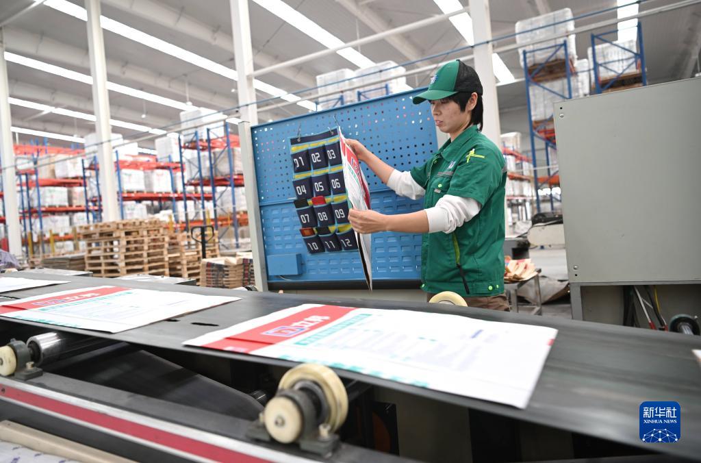 10月12日,河北元氏縣一家新材料生產(chǎn)企業(yè)工人在車(chē)間生產(chǎn)線(xiàn)上工作。