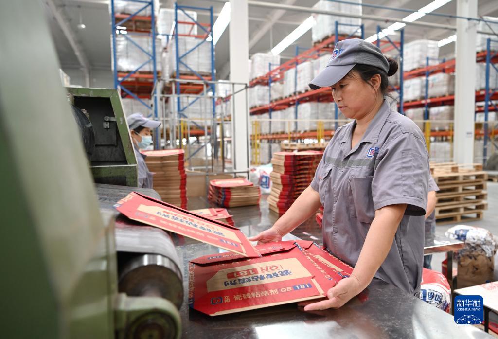 10月12日,河北元氏縣一家新材料生產(chǎn)企業(yè)工人在車(chē)間生產(chǎn)線(xiàn)上工作。
