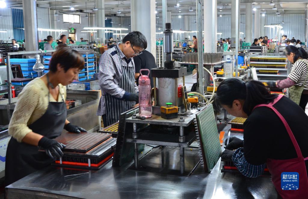 10月12日,工人在河南省夏邑縣會(huì )亭鎮一家打火機企業(yè)的生產(chǎn)車(chē)間工作。