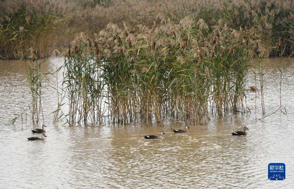 野生鳥(niǎo)類(lèi)在東營(yíng)黃河三角洲濕地棲息(10月12日攝)。