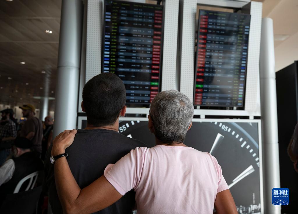 當日,記者在以色列本-古里安國際機場(chǎng)看到大量航班取消或延誤的信息,部分旅客滯留在機場(chǎng)內。新一輪巴以沖突以來(lái),該機場(chǎng)在多個(gè)地方設置醒目的避難場(chǎng)所標識。