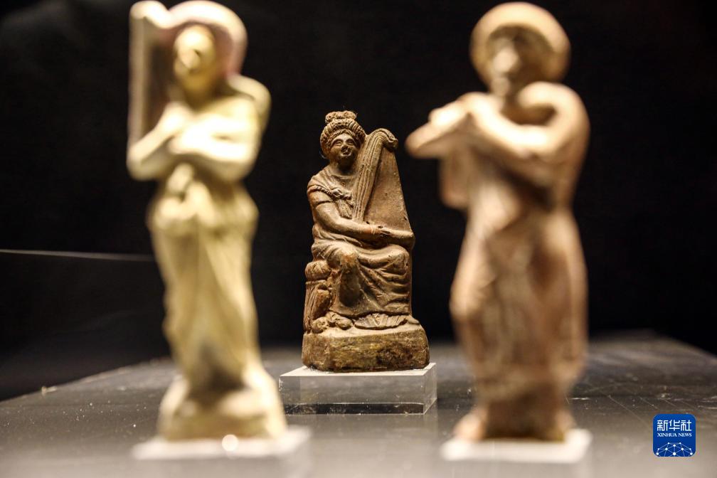 這是10月12日在埃及亞歷山大希臘羅馬博物館拍攝的展出的文物。