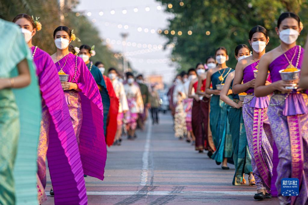 2022年4月13日,在泰國大城府,演員參加街頭巡游活動(dòng)慶祝泰國傳統新年宋干節。