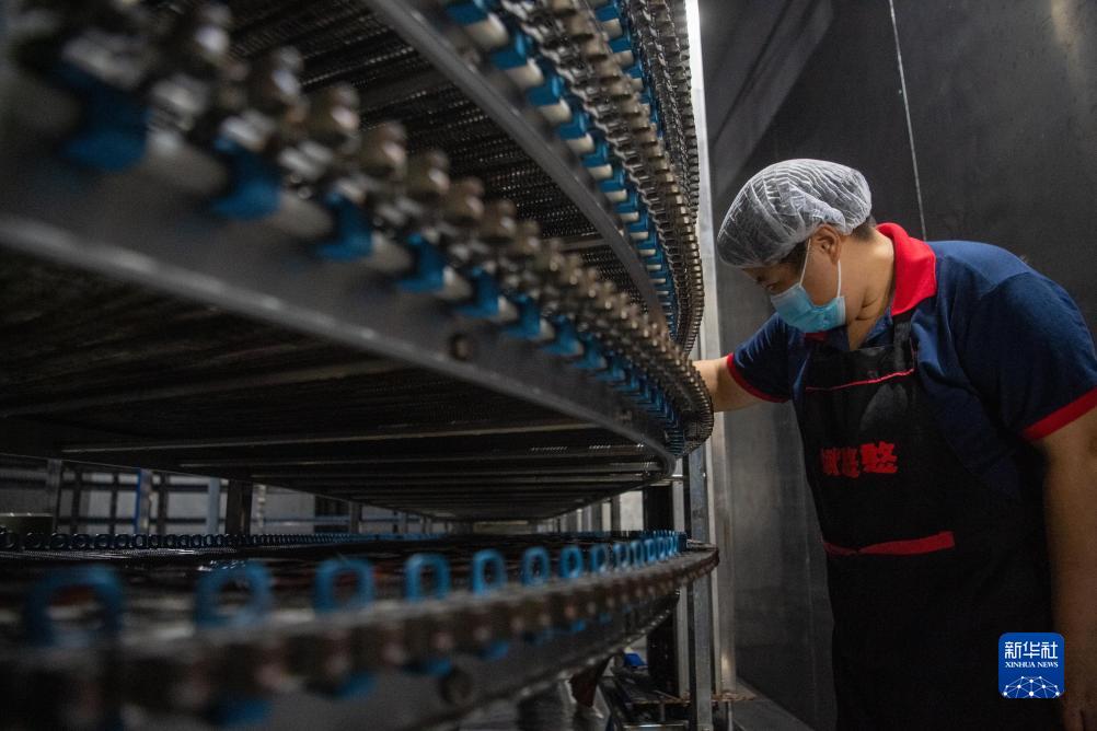 10月11日,在位于重慶市綦江區食品工業(yè)園的斌憨憨食品有限公司生產(chǎn)車(chē)間內,工作人員在生產(chǎn)線(xiàn)上工作。重慶綦江區在推進(jìn)傳統產(chǎn)業(yè)數字化改造的同時(shí),大力培育戰略性新興產(chǎn)業(yè),以衛星制造和大數據應用為核心的新一代信息技術(shù)、新材料、裝備制造、節能環(huán)保、消費品工業(yè)五個(gè)新產(chǎn)業(yè)呈現集群化發(fā)展的良好態(tài)勢。