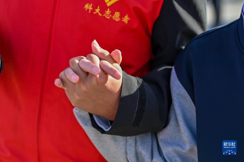 10月13日,志愿者協(xié)助盲校學(xué)生在太原汾河公園參觀(guān)。