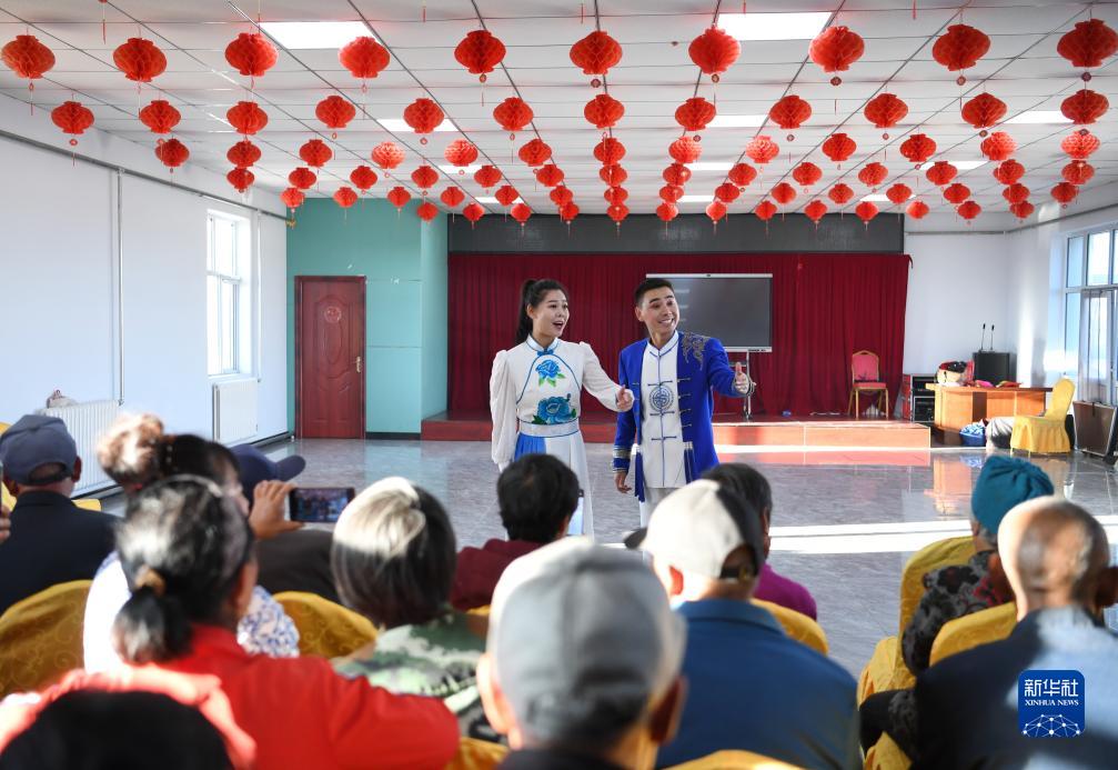 10月13日,河北省康??h二人臺藝術(shù)團演員在康??h大蘿卜村為群眾表演。