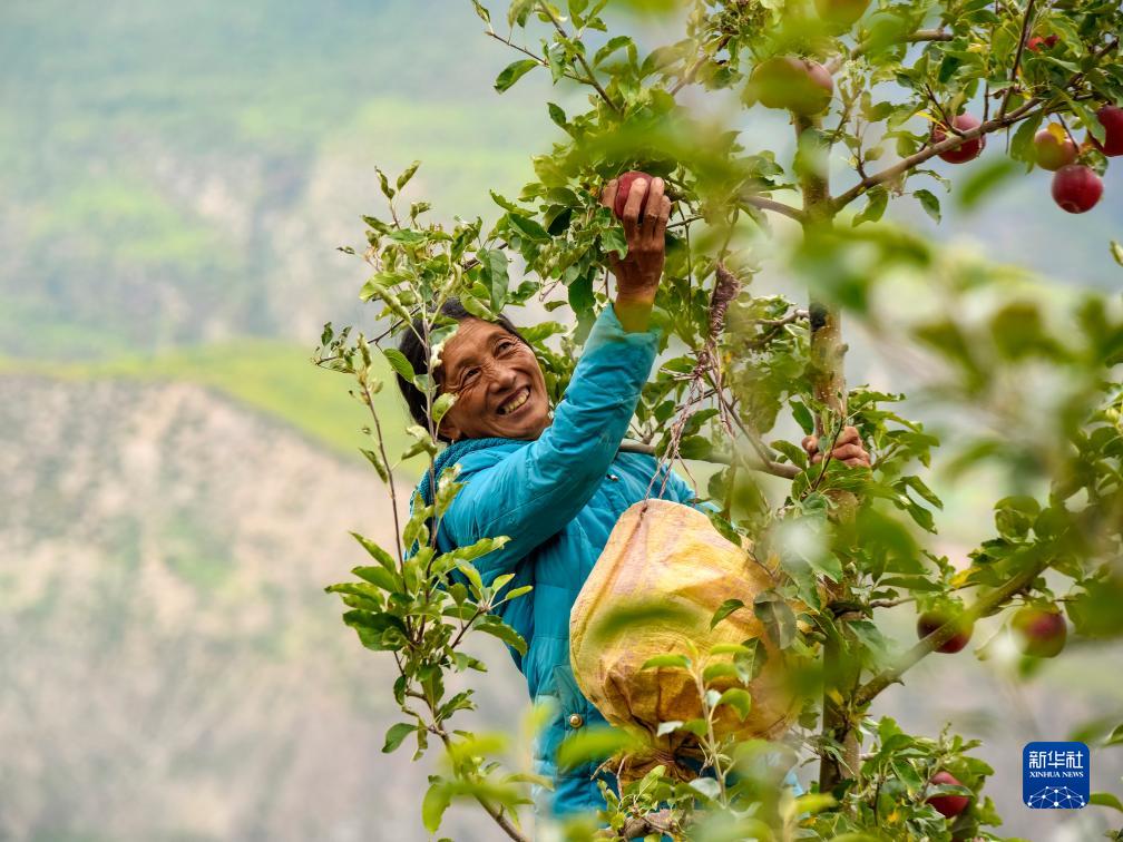 10月13日,在鄉城縣“蘋(píng)果+藏豬”種養循環(huán)現代農業(yè)園區內的有機蘋(píng)果種植示范基地,當地藏族群眾采摘蘋(píng)果。