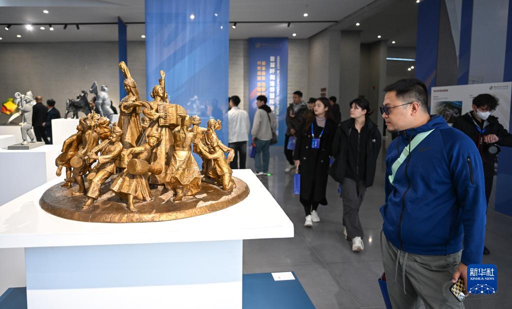 10月14日,觀(guān)眾在首屆呼和浩特國際雕塑藝術(shù)展上觀(guān)賞雕塑作品。