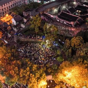 10月13日拍攝的貴陽(yáng)市文昌閣路邊音樂(lè )會(huì )現場(chǎng)(無(wú)人機照片)。