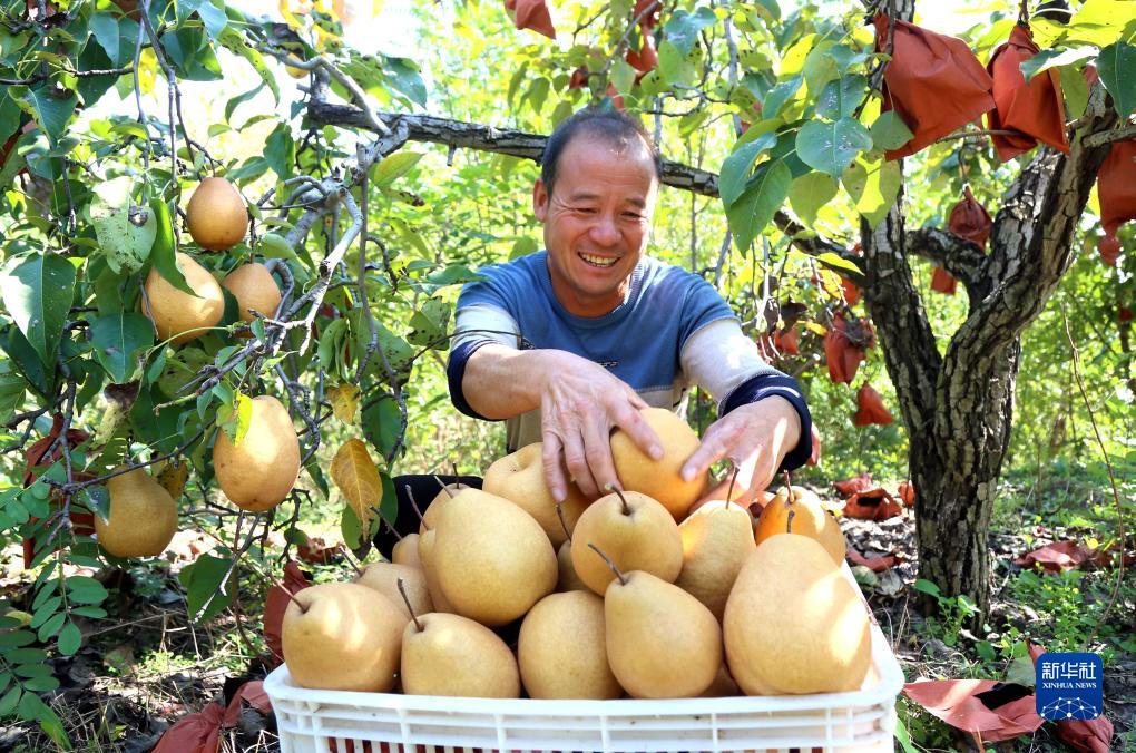 10月14日,河南省洛陽(yáng)市汝陽(yáng)縣劉店鎮二郎村雪梨種植大戶(hù)袁小學(xué)采摘雪梨。