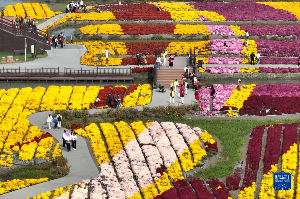 10月14日,游客在江蘇省興化市千垛景區賞菊游玩(無(wú)人機照片)。